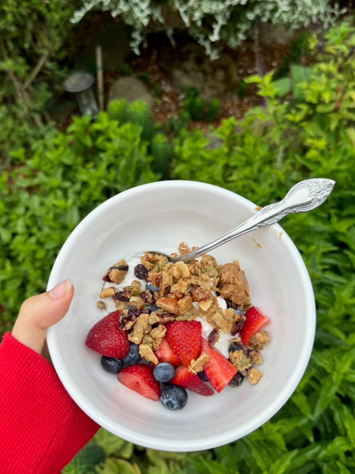 It’s nutty (5g of protein per 1/3 cup), balanced, and not too sweet. I love it on yogurt, tossed into salads for a little crunch, or even as a garnish on charcuterie boards—it’s super versatile.