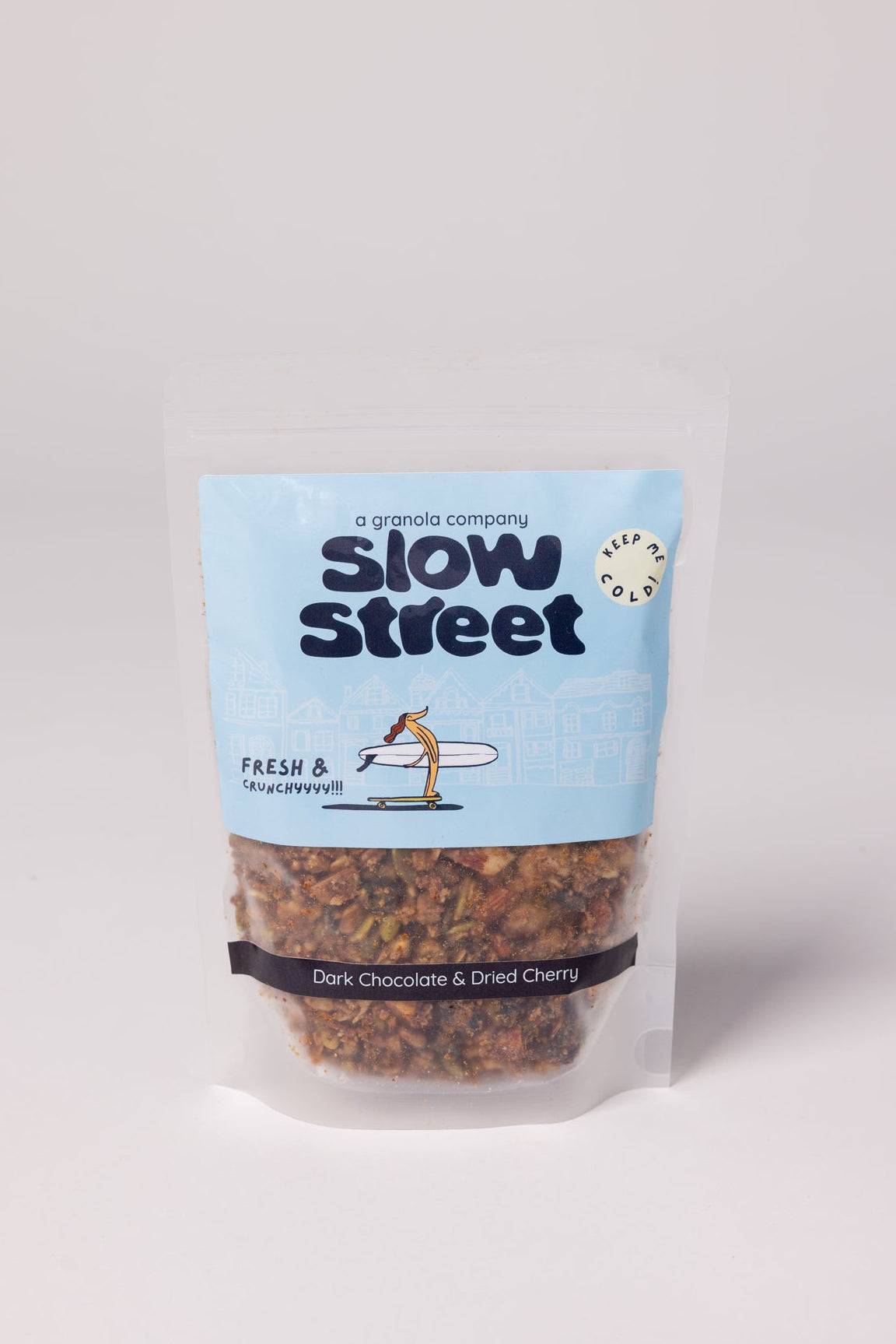 Our first flavor variation - dark chocolate & dried cherry! Based off the original recipe, this flavor leans sweet with added organic dark chocolate chips, organic cocoa powder, and organic tart dried cherries. It still contains three different types of nuts and oats for protein, tahini and coconut oil for healthy fats, and coconut flakes and maple syrup for a little sweet and fiber. I hope this jives up an ice cream bowl and satisfies your chocolate craving.